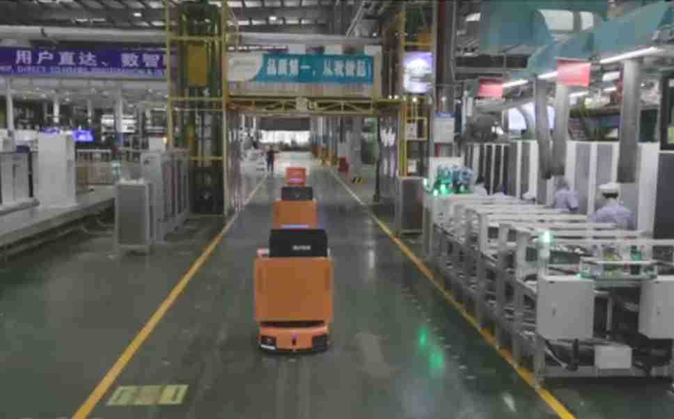 为车载冰箱物流配送打造的智能解决方案,,,包含产中物流通过潜伏举升AMR搬运至线边,,,产后成品物流智能仓储,,流程包含产中物流智能齐套入库,,,线边安灯叫料AMR智能配送至线边,,,,成品入库、、、出库,,,通过无人堆高车机器人,,,智能仓储管理替代人工作业管理,,,实现更高存储、、、更高效率、、、、更具柔性化的解决方案。。。。